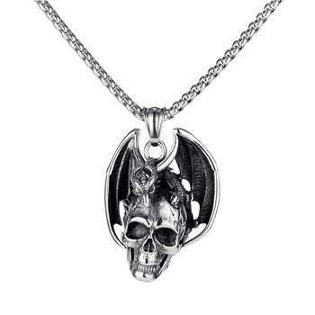 TG Punk teschio drago ala collana in acciaio inox teschio gotico drago volante per gli uomini