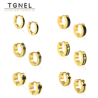 TG 18K chapado en oro Huggie pendientes de acero inoxidable estilo clásico nicho negro Popular goteo aceite joyería de moda