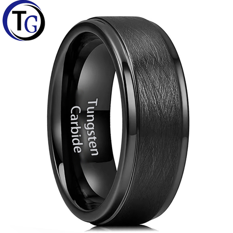 Anillo de carburo de tungsteno TG negro de 8mm para hombres con borde de corte escalonado y accesorio de joyería de moda con acabado cepillado aleatorio