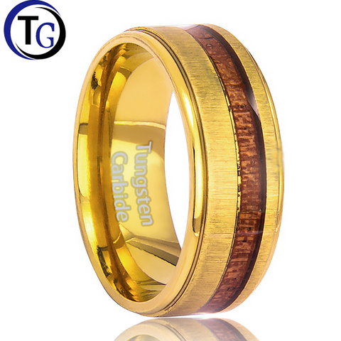 Anillo de carburo de tungsteno TG de 8mm de moda para hombre, conjunto con palisandro, chapado en oro de 18 quilates, Horizontal acabado cepillado, joyería de boda