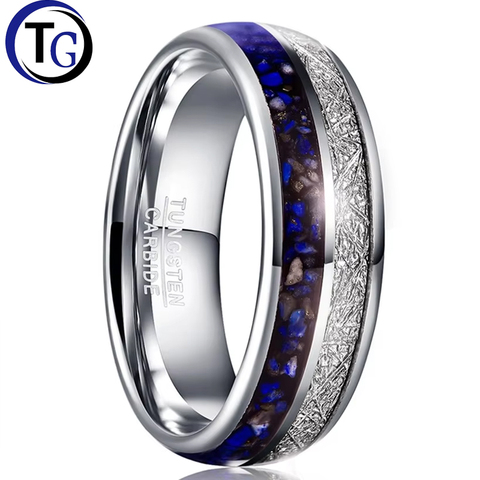 Anillo de carburo de tungsteno de lapislázuli TG de 8mm para hombres con incrustaciones de meteorito, banda de ajuste cómodo, Accesorio clásico de alto pulido