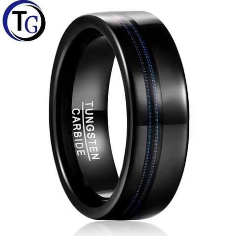 TG 8MM Blue String Anillo de carburo de tungsteno para hombre Diseño geométrico de moda para tamaño de aniversario 7-13