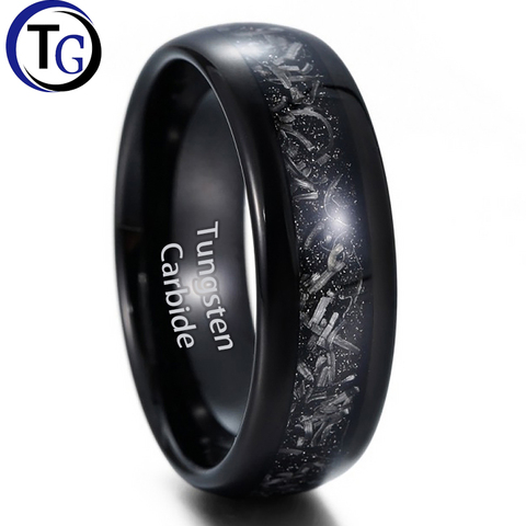Anillos de carburo de tungsteno negro TG para hombres y mujeres, fragmentos de meteorito con incrustaciones planas de 8mm, banda de boda de compromiso para hombres