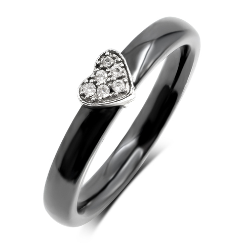 Anillo de cerámica de corazón negro para mujer, ajuste de incrustaciones de Zirconia cúbica de estilo clásico, joyería de porcelana china de moda para bodas