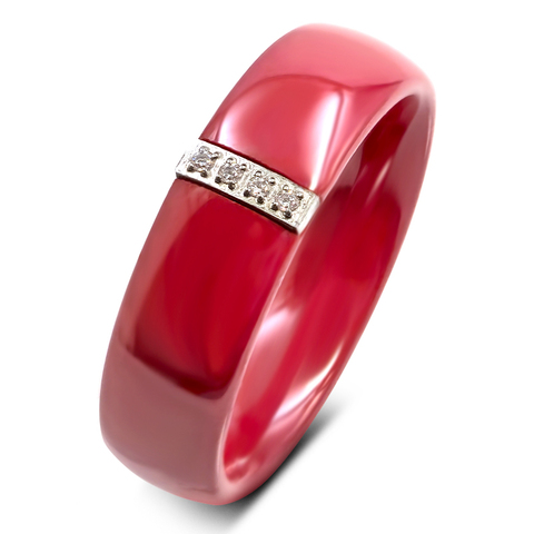 Anillo de cerámica roja brillante para mujer con Zirconia cúbica, joyería de porcelana china de estilo clásico a la moda para compromiso