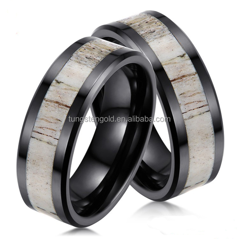Anillo de boda de cerámica negra con asta de ciervo natural, artesanías, novedad, venta al por mayor