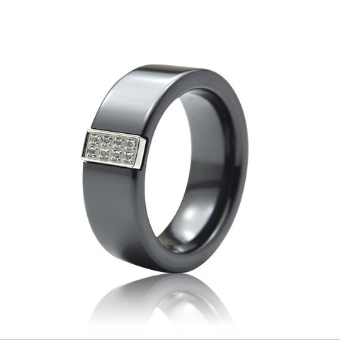 Nueva llegada Joyería de cerámica 6-8mm Diamante Negro Anillo de cerámica Anillo de bodas