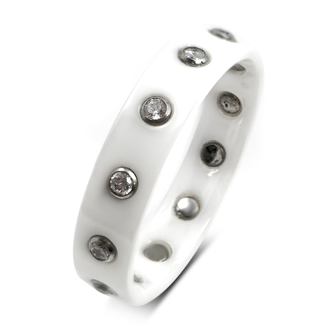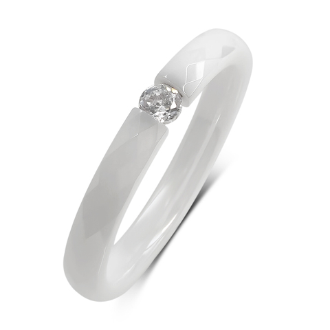 Anillo de cerámica blanca para mujer con Zirconia cúbica, joyería de porcelana china de estilo clásico a la moda para compromiso y fiesta
