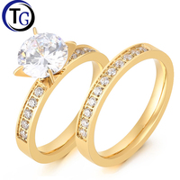TG moda paslanmaz çelik zirkon alyans 18K altın kaplama çift yüzük hediye erkek kadın takı toptan