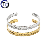 Tg bangle מצופה זהב 14 קראט עבור נשים בצורת חיטה פתוחה צמיד עמיד למים תכשיטים